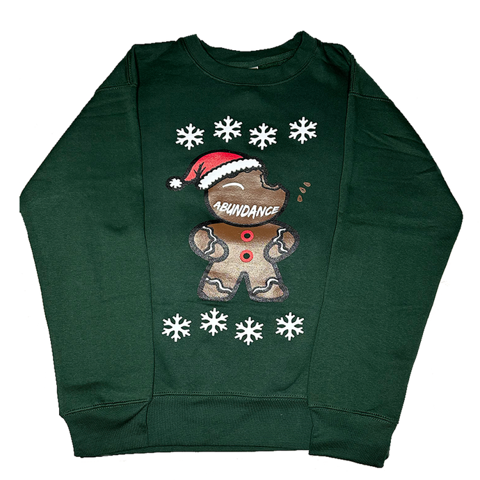 Bitten Gingerbread Man Christmas Sweater (Hunter Green)